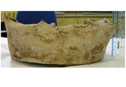 Cast lead-alloy tank dating from the later Saxon period, i.e. 9th-10th centuries. It is bent and ripped in places, but mainly complete. Kevin Leahy writes about these tanks: “The largest lead objects to have survived from the Anglo-Saxon period are the cylindrical tanks that have been found in Middle Saxon contexts, occasionally containing tools Colour Plates 01a-b. These are usually around 500mm in diameter and 300mm deep and were made in two or more parts, the base and one or more pieces forming the side wall. These were cast flat in open sand moulds and rolled around to form a cylinder. The components were melted together with a hot iron. The quality of the finish is often very poor although some examples are decorated. The function of these tanks is not understood. Three tool hoards (Flixborough, Stidriggs and Westley Waterless) have been found in lead tanks, but they would make inconvenient toolboxes. Most of them are fitted with two small iron carrying rings and the Flixborough hoard contained two hooked iron rings that would have allowed the tanks to be carried on a pole. Jane Cowgill thought the tank from Riby Crossroads, Lincs. may never have been watertight, but three lead tanks found near Garton on the Yorkshire Wolds had sooting on their bases which had been burned through and repaired in places. They were found in association with tenth century material.” There is a C14 date for Stidriggs of AD 775-892 at one standard deviation. Ben Edwards, former county archaeologist for Lancashire, adds that the Dean (Cumbd.) coin hoard, found prior to 1790, was apparently found in a lead container. Chronology Broad period: EARLY MEDIEVAL Period from: EARLY MEDIEVAL Period to: EARLY MEDIEVAL Date from: Circa AD 750 Date to: Circa AD 1000