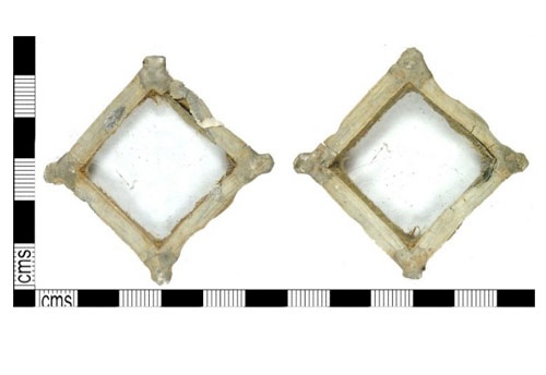 A single piece of a post-medieval composite window, square in shape, dating from the 17th century. It is composed of a white/greenish glass within a frame of milled lead cames with straight tooth marks of Knight’s type E (see King in East Anglian Archaeology 32, p.39-40). Chronology Broad period: POST MEDIEVAL Period from: POST MEDIEVAL Period to: POST MEDIEVAL Date from: Circa AD 1600 Date to: Circa AD 1700